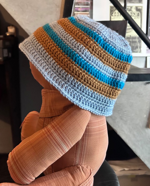 ハット内側のタグが真後ろにくるように被ると綺麗な形になります。