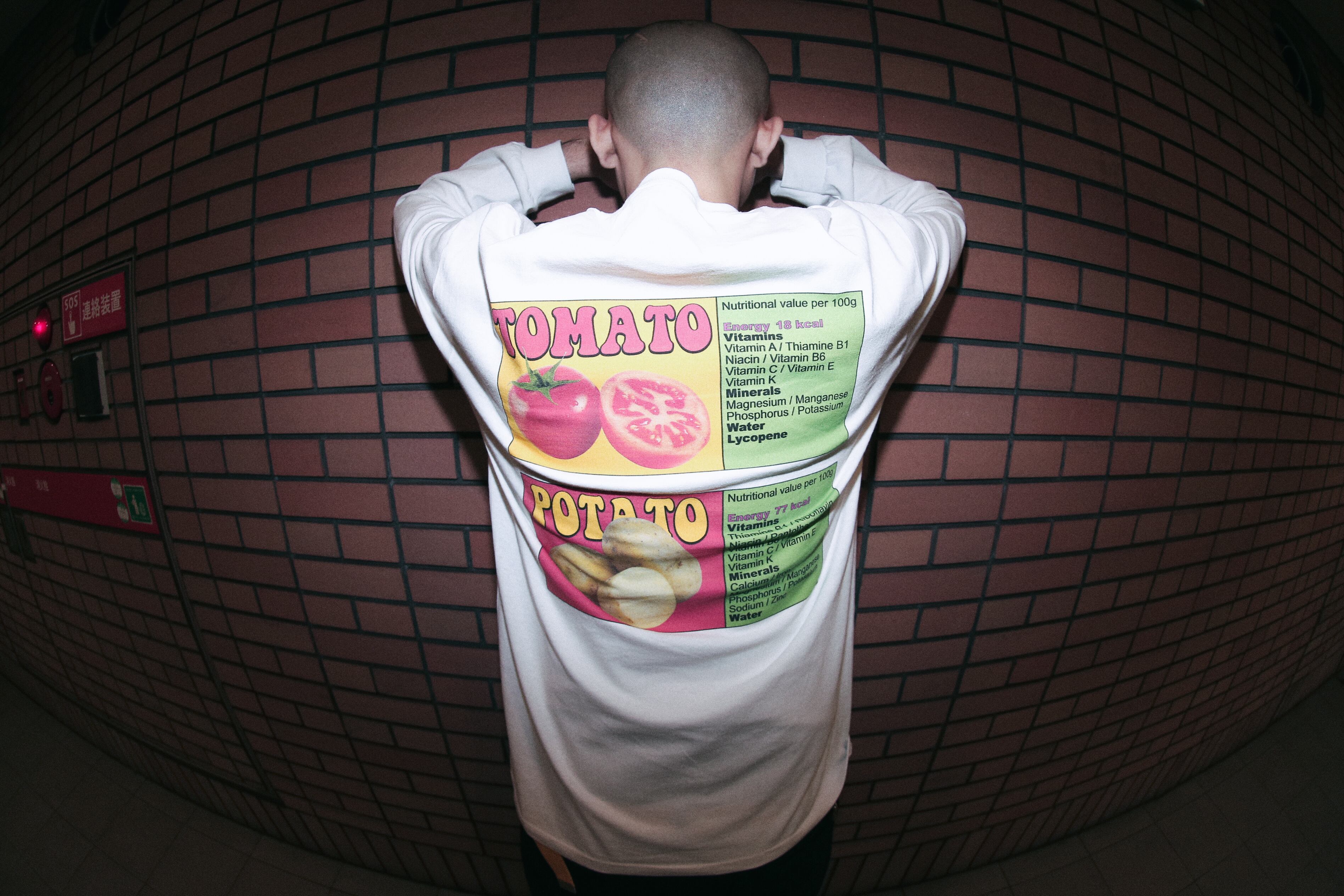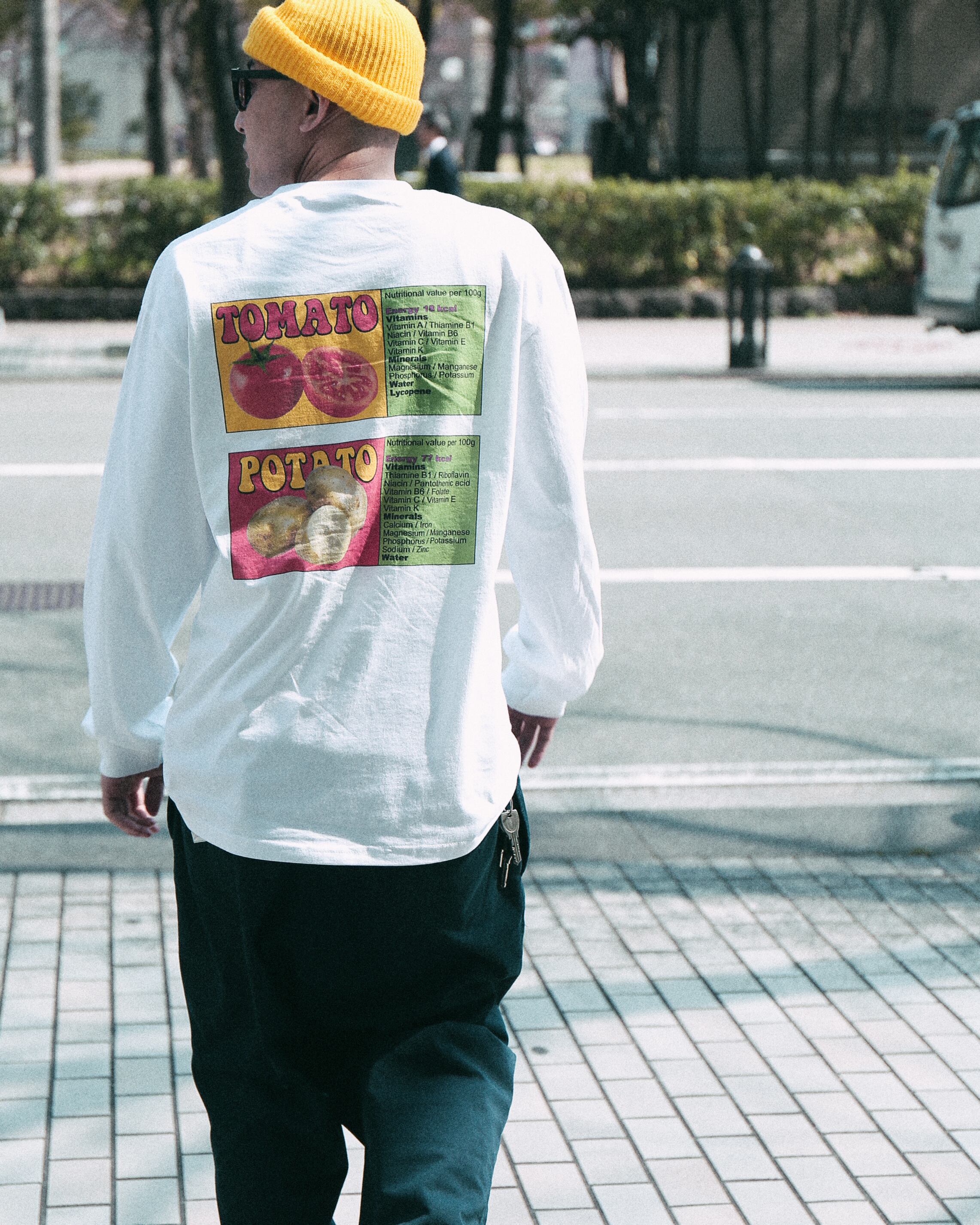 フロントにはPOPなデザイン バックプリントにはトマトとポテトの成分を忠実に表記しました